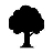 A simple black silhouette of a tree with a rounded, leafy canopy and a short trunk.